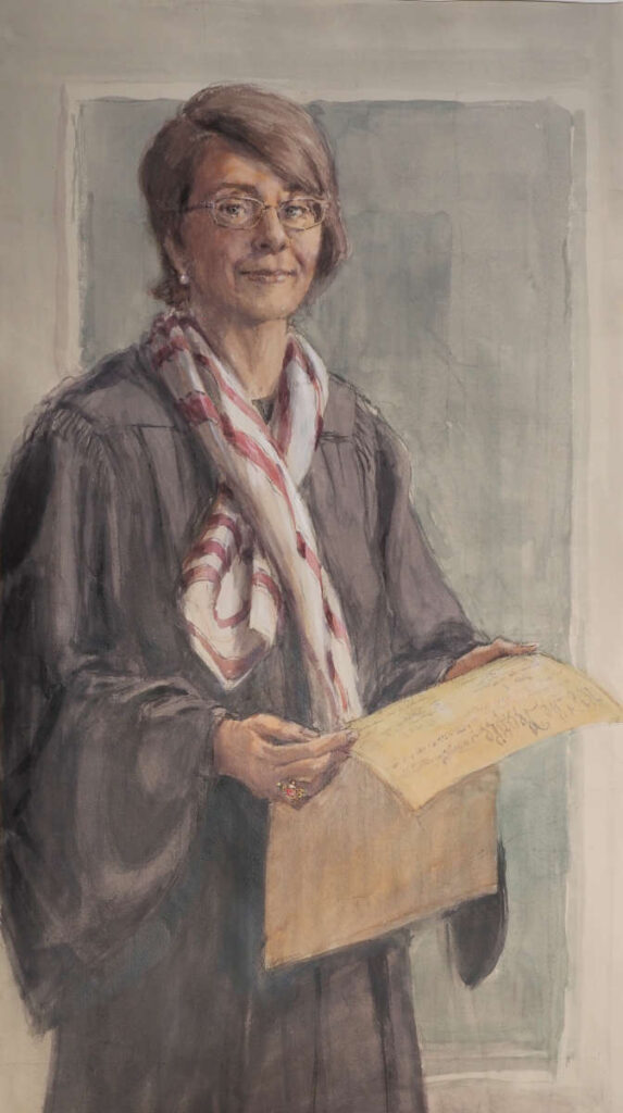 I painted all three portraits over the last eighteen months, with sittings and great help from the Judges and their families. I chose over-sized archival paper and the most light-fast pigments to represent both the durability and the delicacy of the law.